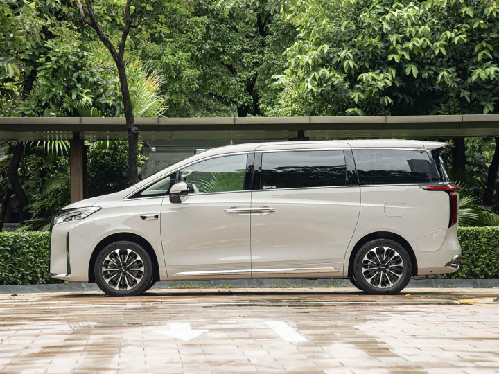 再来看车身侧面部分,车身尺寸为5050×1960×1900mm,轴距3085mm,相比高山8、高山9更紧凑,但通过1.8米超长共轨滑轨系统,实现了“小身材大空间”的魔术。侧滑门开口宽度达37厘米,台阶高度适中,老人小孩上下车无需弯腰迈腿。隐藏式门把手与悬浮式车顶设计,进一步降低了风阻系数,提升续航表现。轮毂配置扎实,全系标配 18 英寸铝合金多辐轮辋,搭配 245/50 R18 静音轮胎,既保证舒适性,又减少胎噪干扰。